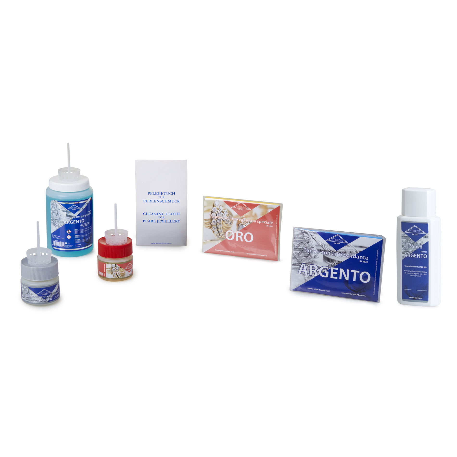 Liquidi e panni per la pulizia di oro argento e pietre.